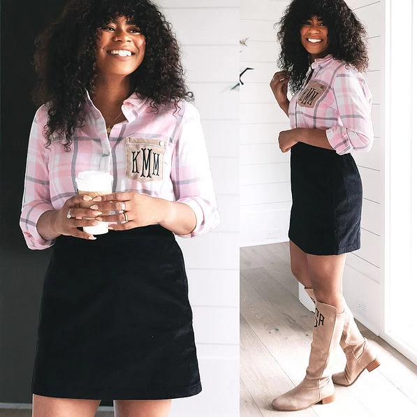 Create a trendy fall look in this cute skirt featuring a flattering pull on waist with a cute-as-can-be silhouette. Available in two colors, this trendy skirt features an elastic waist band in the back and a hidden side zipper. Whether you are going to a gameday tailgate or strolling through the pumpkin patch this skirt completes your outfit! Don’t forget to pair it with a monogrammed top for an adorable outfit!
