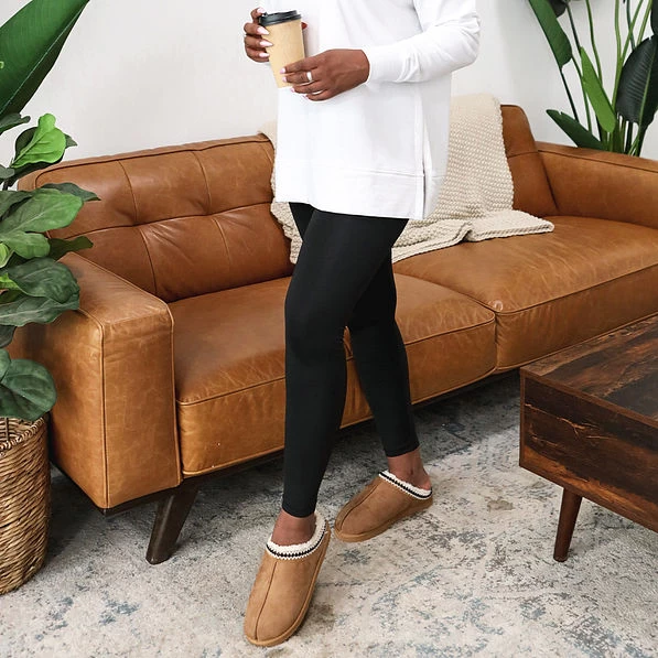 These trendy house shoes are perfect for movie nights at home or running to the store in your favorite fall athleisure. You’ll love their accented trim and attractive ivory fleece comfort. Our moccasins are perfect for women of all ages and make fabulously fun gifts for a special lady in your life.