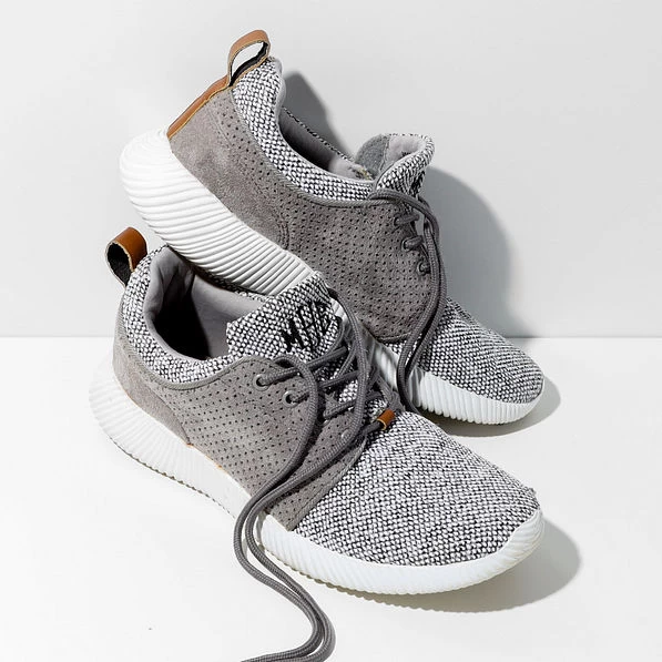 Our athleisure shoes are truly one-of-a-kind, with knit-mesh uppers and faux-suede detailing to create the perfect union of fitness and fashion. Easy to coordinate with all kinds of outfits, these shoes are a neutral gray color with white and tan accents. Dress them up for sightseeing excursions with your partner and for meeting friends for drinks at the club. Or simply throw them on with your comfy sweats while you run errands.