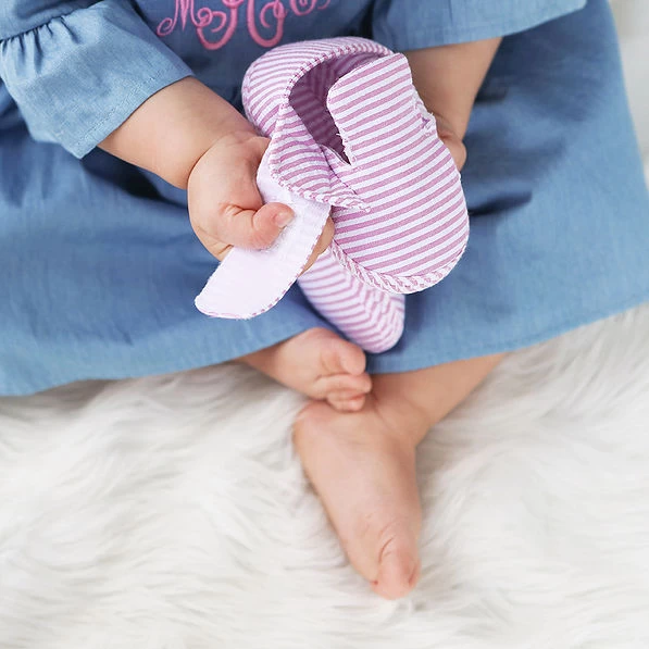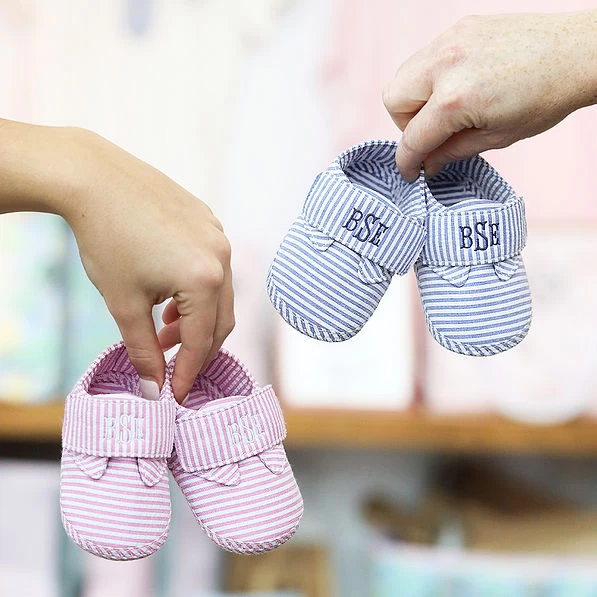 These adorable baby booties are perfect for your newest addition to the family. Available in a solid ivory color, pink seersucker, and navy seersucker, these personalized booties will pair perfectly with any outfit! Whether you purchase these shoes for a birthday gift, homecoming outfit, or Christmas present, they will be the first thing your loved one puts on every morning! Check out more baby gifts here!