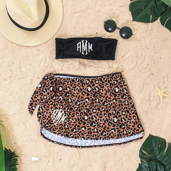 Our Monogrammed Bandeau Top is a must have this spring and summer! Available in solid black, this monogrammed swimsuit has a tie back that allows for adjustability. It comes with removable padding for extra support and is embroidered with the initials, font and color of your choice! Customize it to match your personalized beach towels or monogrammed beach bag. You can also pair it with these high waisted bikini bottoms!