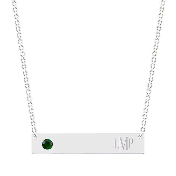 Our Monogrammed Birthstone Bar Necklace from Marleylilly brings some serious personality and shine to any outfit. This 16-inch necklace with a 3-inch extender chain is available is silver and is adorned with your choice of birthstone.