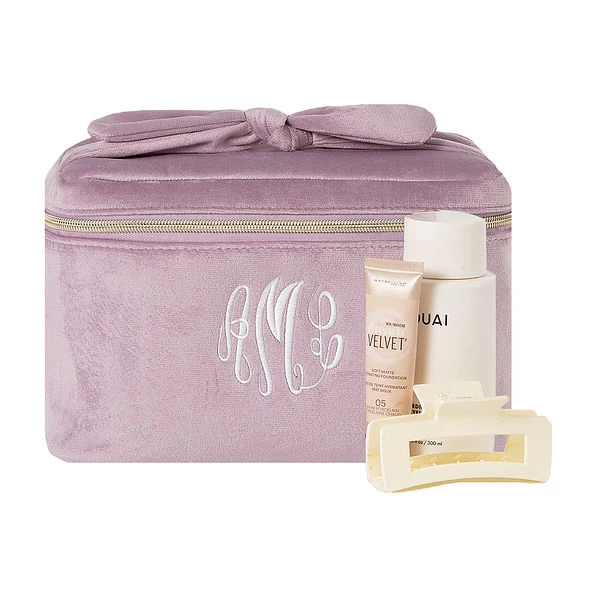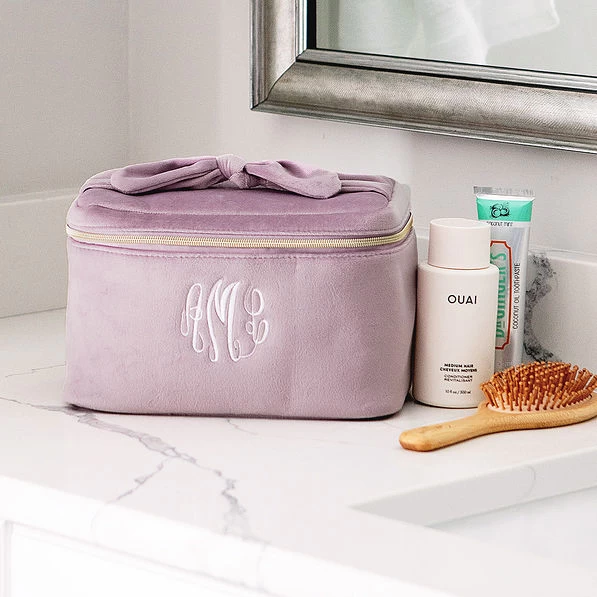 This adorable Bow Train Case is the perfect addition for your travels! Made with high quality materials, this case is plenty durable to safely carry all your cosmetics and goes perfectly with your other bow travel jewelry case! Fully lined, this bag features a bow handle, zipper closure, and attached mirror on the inside of the bag.
