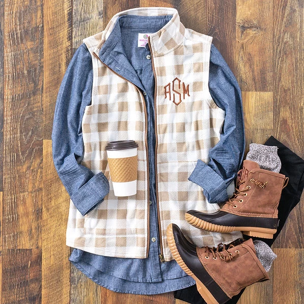 Our Monogrammed Buffalo Plaid Fleece Vest is perfect for running errands and going to holiday events. It’s also great for date nights with your favorite guy or gal, happy hours with friends and Sunday brunches with family. This versatile buffalo plaid print vest is a great add to just about any outfit.