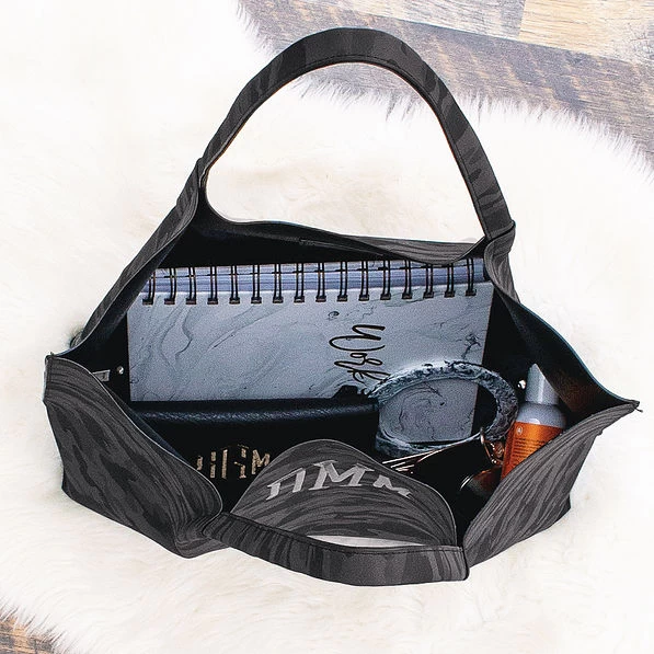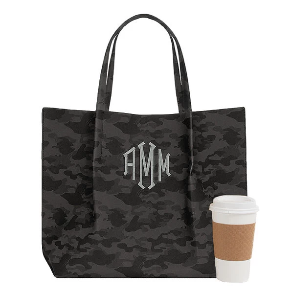Our camo print tote is perfect for the fall and winter seasons. Easy-to-carry drop handles measure approximately 7 inches and make it perfect to throw over your shoulder and go. Fill with your choice of monogrammed goodies, including monogrammed wallets, monogrammed keychains, and monogrammed phone cases. Complete the look with a matching pair of monogrammed camo duck boots!