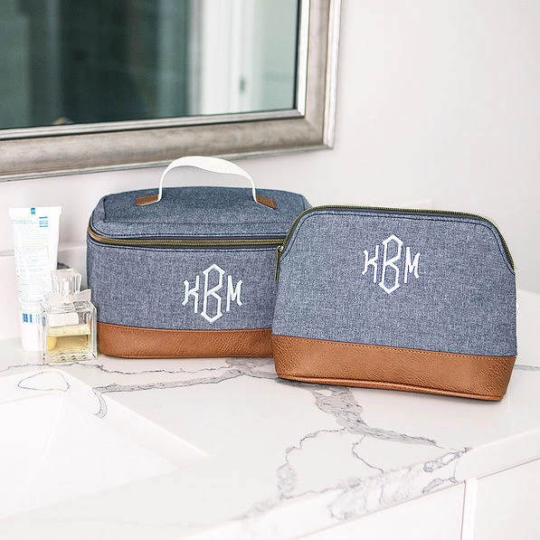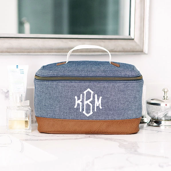New to our travel collection, this Monogrammed Train Case is the perfect addition for your travels! Made with high-quality materials, this case is plenty durable to safely carry all your cosmetics and goes perfectly with your other personalized travel accessories! Fully lined, this bag features a zipper closure and an attached mirror on the inside of the bag. It can also easily be paired with our fab matching counterpart, the monogrammed chambray weekender!