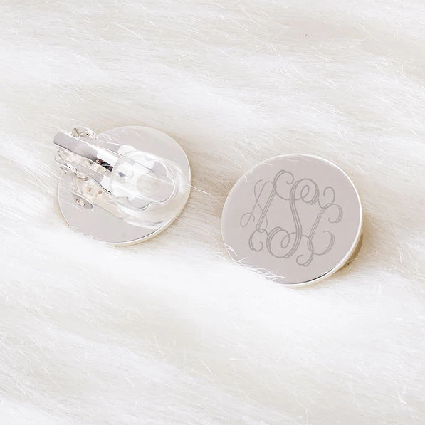 Don’t have your ears pierced, but want to add some monogrammed earrings to your jewelry collection? These silver personalized clip on earrings are timeless and the perfect way to complete any outfit. Measuring approximately 18 mm in diameter, you can personalize these earrings in the initials and font of your choice.