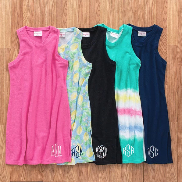 Whether you’re lounging poolside or sittin’ in the sand, our Monogrammed Coastal Swim Covers will be a must-have this summer! These cover ups are so cute and comfortable, you will want to wear them all summer long. They would be perfect to throw on over your bathing suit at the pool or beach. Made of a soft terry material with side slits at the hem, these sleeveless cover ups are cozy and easy to wear! Pair it with your favorite monogrammed sandals and beach bag for day in the sun!