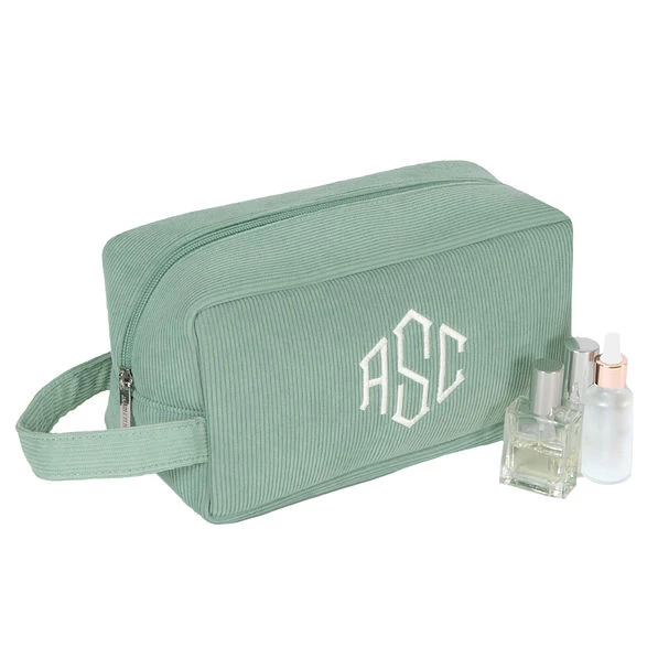 Keep your makeup, cosmetic brushes and accessories secure while traveling with our personalized corded cosmetic case that never goes out of style. This aqua zip-top monogrammed cosmetic bag is roomy enough for all of your essentials!