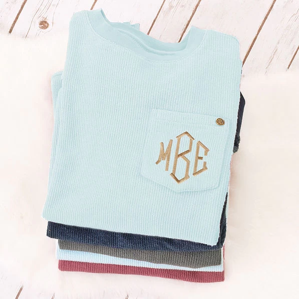 This corded sweatshirt is made of a super-soft knit material that offers touchable texture and added warmth. The shirt is designed with a relaxed fit: Enjoy a natural waist and a tunic length that falls comfortably at the hips. Cuffs at the wrist fit snugly to keep drafts at bay yet aren’t constricting. The breast pocket, which is not a usable pocket, can be monogrammed — or it can be left non-monogrammed. The choice is up to you! Pop on this corded crew sweatshirt as an easy wardrobe classic that pairs perfectly with your favorite jeans or comfortable leggings. Whether you’re lounging at your home or running errands, this monogrammed sweatshirt is a great addition to your casual and comfy look.