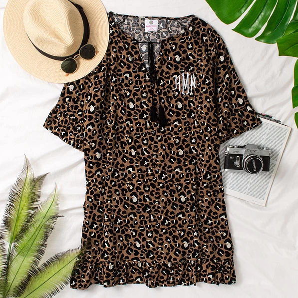 This ruffle sleeve cover up is flattering on all body types! With an adorable neck tie tassel, a classic v-neck and a monogram, this cover up will quickly become your favorite this summer. Complete your look with one of our monogrammed beach bags and a pair of monogrammed sandals.