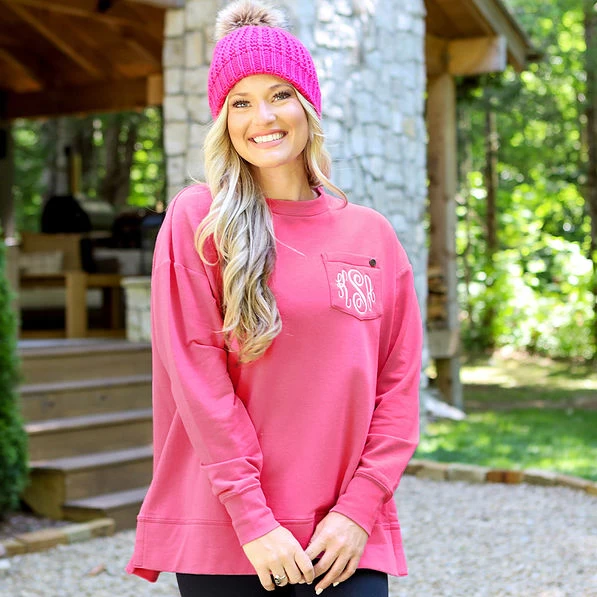 It’s the attention to details that make this sweatshirt with a chest pocket a season-spanning winner. The rounded crewneck collar and cuffs are banded for comfort. It’s lined with a super-soft inside layer to keep you cozy. The straight hem is notched at the sides and slightly longer in the back for a flattering tunic-length fit. Plus, we finished this cotton pullover with a branded pocket stud that complement your monogrammed initials on the nonfunctioning chest pocket.