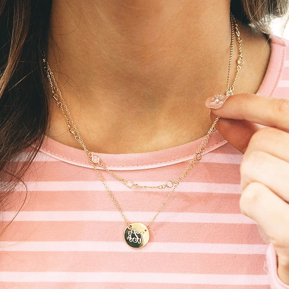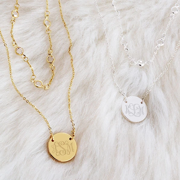 This monogrammed disc necklace is so dainty and classy! Available in gold and silver tones, this engraved necklace features a 15 mm monogrammed disc. Perfect for any look, this necklace will dress up any monogrammed dress and sandals outfit. Personalize one to add to your jewelry collection today!
