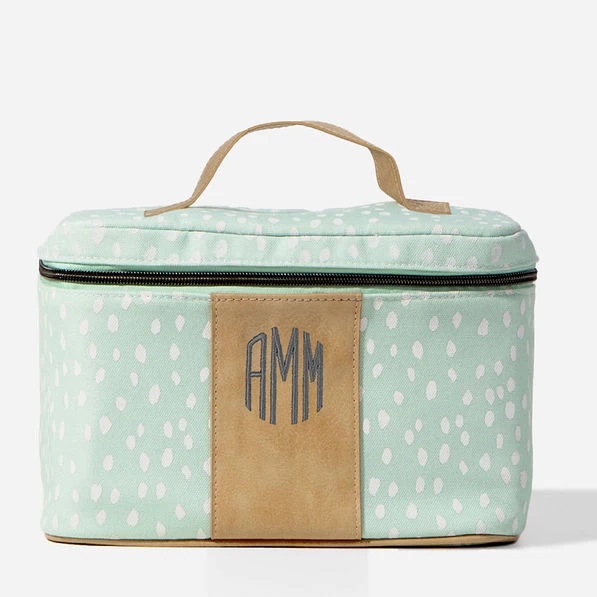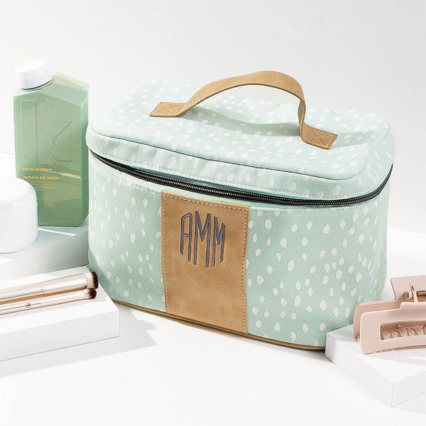 New to our travel collection, this Monogrammed Train Case is the perfect addition for your travels! Made with high quality materials, this case is plenty durable to safely carry all your cosmetics and goes perfectly with your other personalized travel accessories!