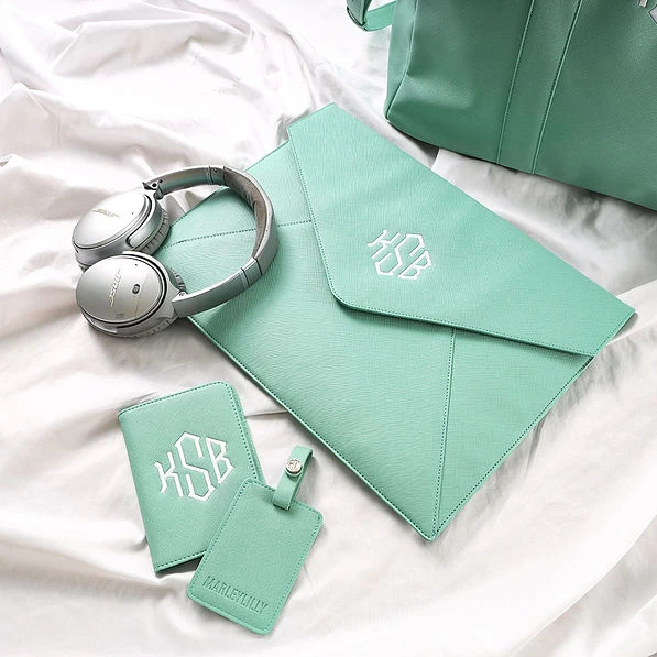 Dress up your tech with this adorable personalized laptop sleeve! This laptop case features a beautiful saffiano material on the outside and a smooth neoprene lining on the inside to ensure your laptop stays snug and protected. Check out our other Saffiano Collection items here!
