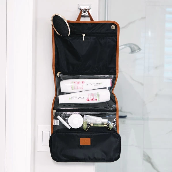 Traveling has never been easier! This Monogrammed Hanging Toiletry Bag is your go-to travel bag for carrying all of your toiletries neat and organized! Featuring three inner pockets and an inner pouch to keep all of your items organized and compact. Complete your set with our Monogrammed Weekender, Monogrammed Overnight Tote, and Monogrammed Cosmetic Bag.