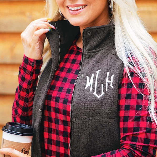 A Monogrammed Heathered Quilted Vest from Marleylilly adds instant personality and warmth to your cool-weather layered look. This feminine monogrammed quilted vest is an easy add that is perfect over tunics, sweaters, dresses and more for a bit of extra warmth. We think that our Marleylilly monogram vest in your choice of four heathered colors just might be this season’s ultimate wardrobe staple!