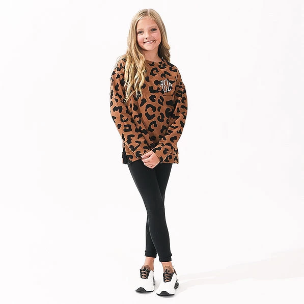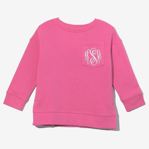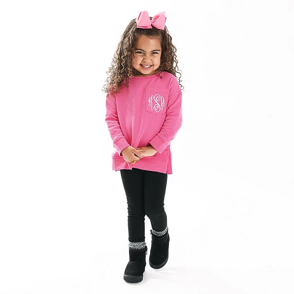 Whether you’re enjoying family days at home or visits to your local park, you’ll love the easy style and comfort of our Monogrammed Kids’ Crewneck Pullover Sweatshirts. An essential for your girls, this style is available in hot pink and leopard. These comfy crewneck sweatshirts are likely to become their new go-to pick for the cooler months. Choose your favorite embroidery color and style to personalize this crewneck on its non-functional pocket. Play with our available monogram designs using our exclusive preview tool to find your very favorite!