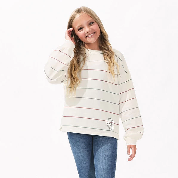 Your mini-me will love the easy style and comfort of our Personalized Kids’ Puff Sleeve Sweatshirt. It’s an essential for your girls wardrobe all year long. This comfy sweatshirt will be her new go-to pick for the cooler months. Choose your favorite embroidery color and style to personalize this sweatshirt. Play with our available monogram designs using our exclusive preview tool to find your very favorite!