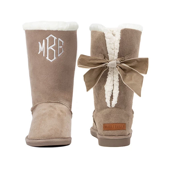 Step out in style with these adorable girls’ sherpa booties! Your daughter, niece, or granddaughter will want to wear these comfy boots every day this winter! Each pair is made of faux suede, and features their monogram on the front and sherpa lining on the inside. We especially love that this trendy shoe features a cute leopard print around the bottom!