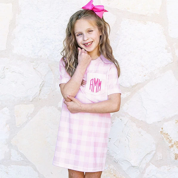 Too cute for words! I see the CUTEST monogrammed dress looking at me! These personalized pocket t-shirt dresses are so stretchy and soft, making them perfect for school or playtime! Just add a pair of monogrammed sandals and a cute hairbow for the cutest look.
