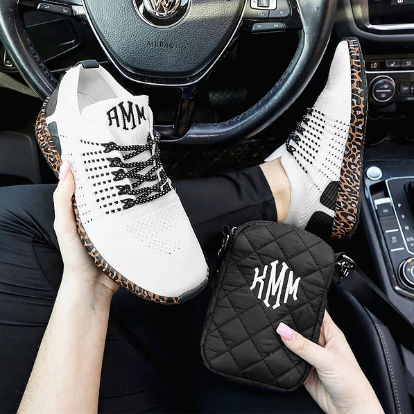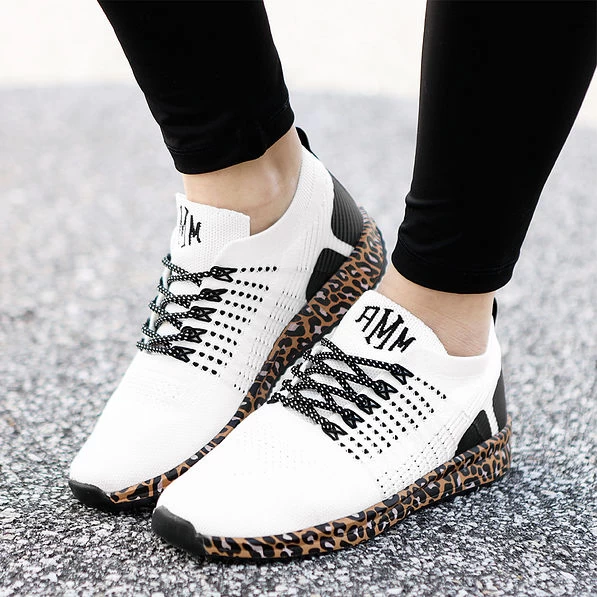 These lightweight athleisure style sneakers are perfect for any leopard lover! Featuring a leopard print design on the bottom sole, these monogrammed sneakers are made of breathable knit mesh fabric for optimum comfort. Pair them with any look from on-the-go casual wear to dressed-up athleisure. Looking for more monogrammed sneakers? Check out our entire collection here!
