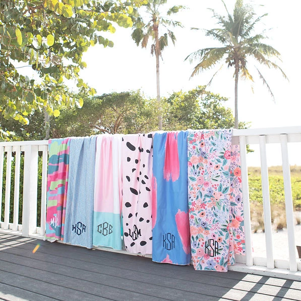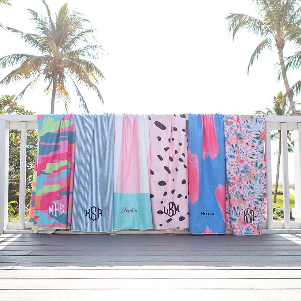 Is the beach your happy place? Well, let’s make it a little bit happier with one of our fun-n-functional microfiber beach towels! These monogrammed beach towels are a fantastic way to stand out at the pool, at the beach or at the water park this summer season. We think that our personalized beach towels’ vibrant colors will make you happy and will keep you warm, dry and comfortable — wherever you are! Coordinate your favorite bathing suit or opt for one of our personalized bathing suits or coverups for a monogram-themed look that will get you noticed.