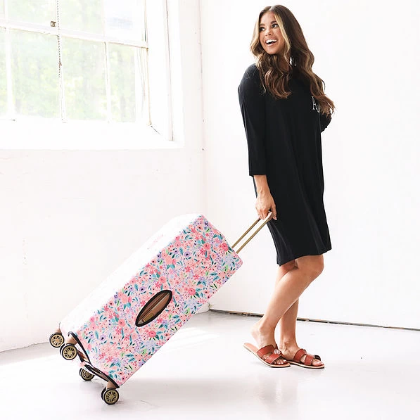 Make your suitcase easy to spot at baggage claim and protect stylishly with this adorable monogrammed luggage cover! Our personalized suitcase cover keeps your luggage from from being scuffed and scratched when traveling. If you are looking for a way to add some color to your large suitecase this cover will be perfect for you!