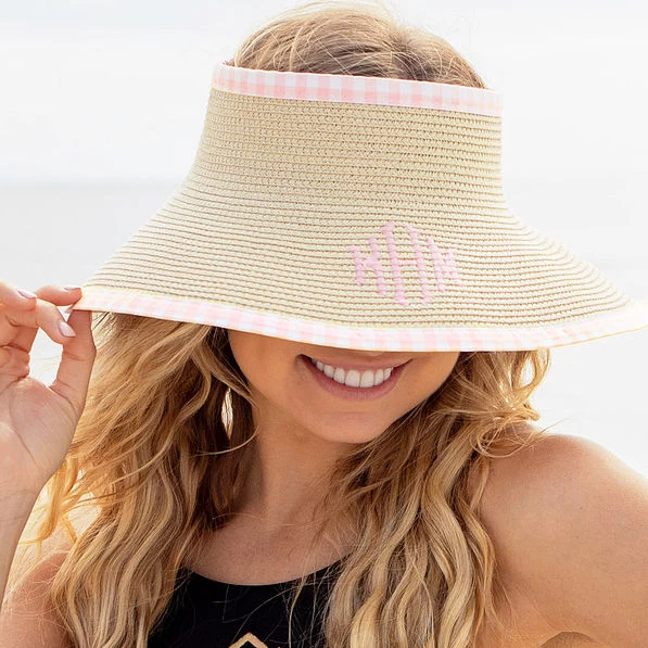 This personalized straw hat is a wardrobe win! With its lightweight, packable straw construction, its unique details of each colorway, our Monogrammed Straw Visor Hat is the definitive sunny weather headwear. Get ready and go — you’ll be able to roll up this ultra-packable and space-saving straw hat to tuck into either your Monogrammed Mega Beach Bag or into your suitcase when you’re en route to your fave tropical vacay spot. This versatile straw visor hat is the perfect accessory for casual dresses, shorts and T-shirts!
