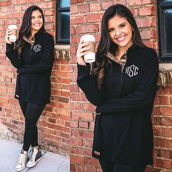 Stop your search for the most comfortable and most versatile popover shirt or sweater! Our Monogrammed Popover Tunic is just the right weight to accommodate those breezy days when taking the kids to school, sitting in lawn chairs at the kids’ soccer game or while running errands. Made from an easy-care cotton and polyester blend, this durable sweater is a must-have addition to every season. You’ll love how this classic fit popover sweater hits at the low hip, which makes it ideal to pair with skinny jeans or leggings. Even better, we have a wide range of sizes, including plus-sized popover sweaters and kids’ sizes for some mommy and me opportunities that will get you a ton of attention.