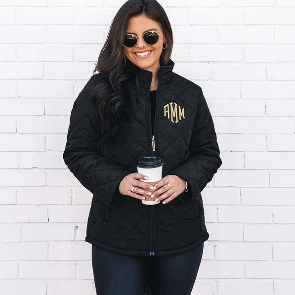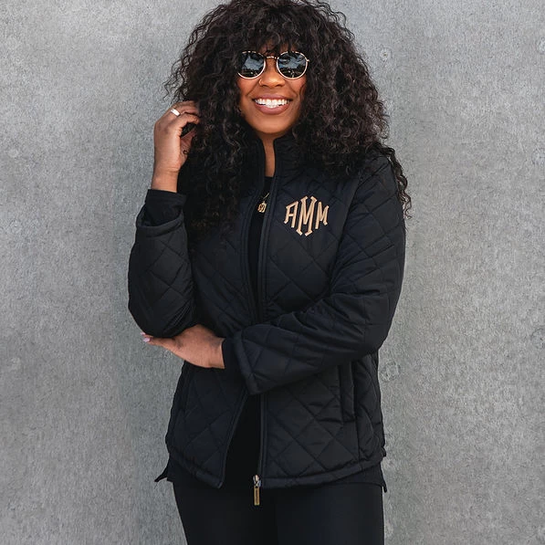 This monogrammed puffy jacket is the perfect finishing touch to a cool-weather look when it’s time to bundle up. Whether you’re heading to work, going to hit the trail or running errands; this black puffy jacket is ready for it all. This jacket features a full front zipper, pockets, collar, and a stylish quilted pattern. Make sure to complete your winter look with a pair of Monogrammed Duck Boots!