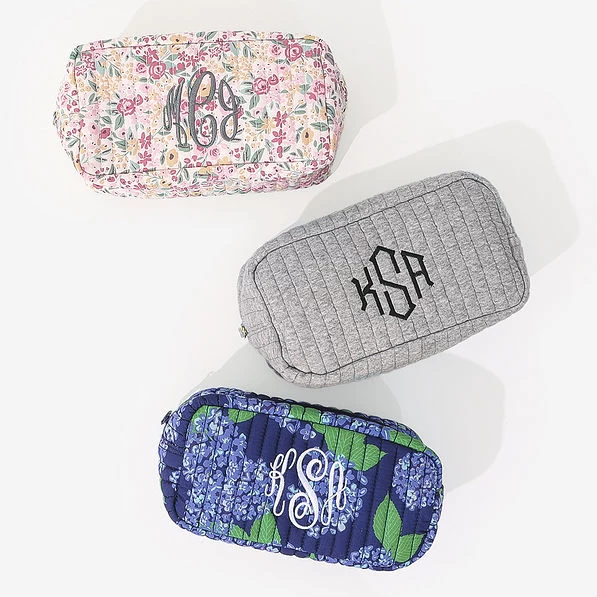 This Quilted Cosmetic Case is so roomy and spacious, making it perfect for the girl on the go. Keep your makeup, cosmetic brushes and accessories secure while traveling with our zip-top personalized cosmetic bag. This bag features a classic quilted design that never goes out of style!