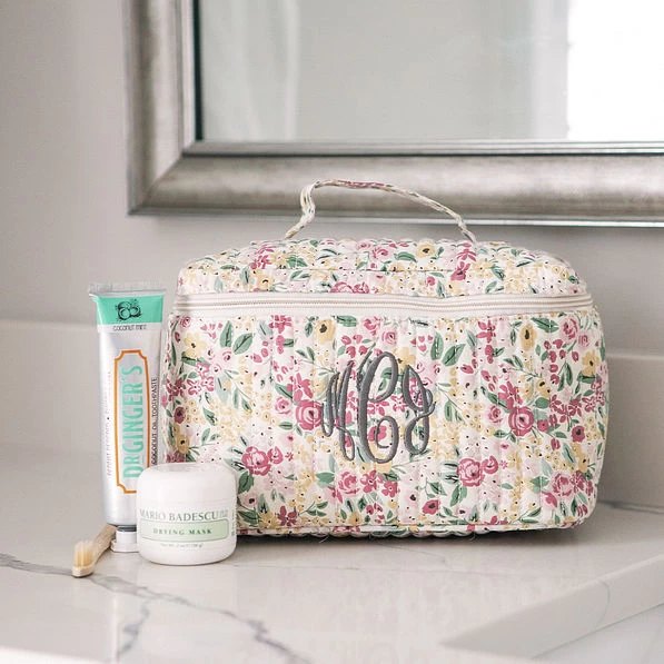 This Monogrammed Train Case is the perfect addition for all your travels! Made with high quality materials, this case is plenty durable to safely carry all your cosmetics and goes perfectly with your other personalized travel accessories! Fully lined, this bag features a zipper closure and an attached mirror on the inside of the bag.