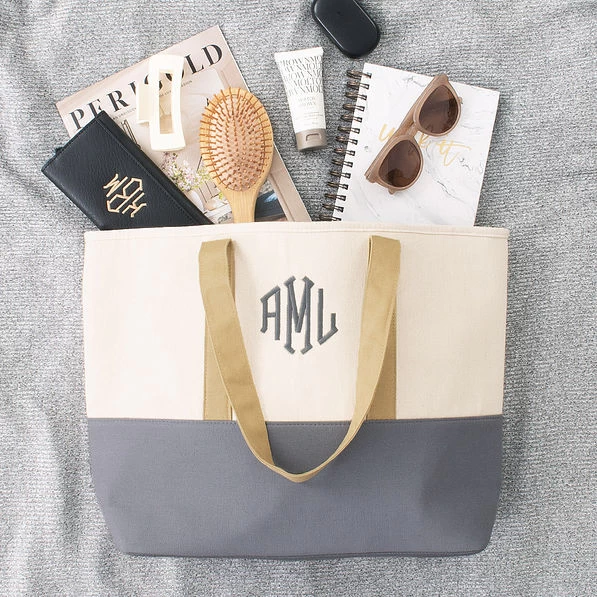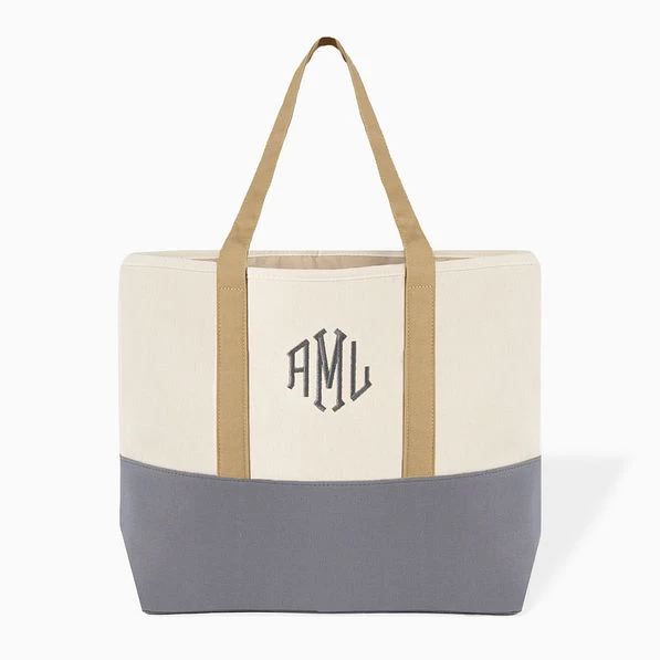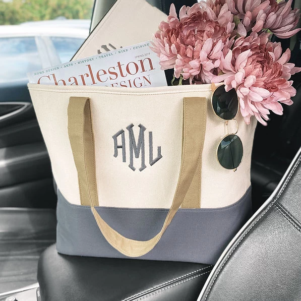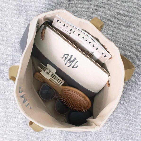 Your new go-to monogrammed tote is here! Easy for throwing in all of your necessities on the go, this monogrammed bag is very spacious. Whatever you use this canvas tote for, you’re sure to brim with style! Easy-to-carry drop handles measure approximately 10 inches and makes it perfect to throw over your shoulder and go. Fill with your choice of monogrammed goodies, including phone cases, monogrammed key chains and monogrammed cups. If you love this tote, check out our matching overnighter and cosmetic case!