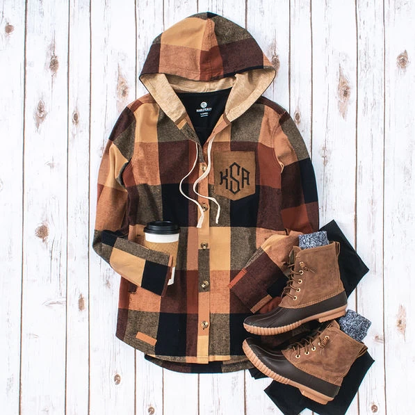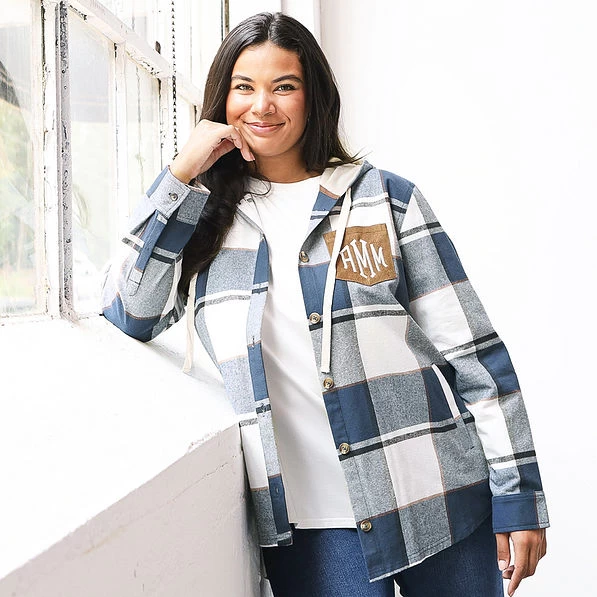 Take advantage of our exclusive preview tool, which allows you to play with monogram scripts, fonts, and colors to find the perfect combination for you. Prefer a non-monogrammed shacket? No worries! Just check the “Do Not Personalize” box before adding your plaid shacket to your cart to choose the non-personalized option.