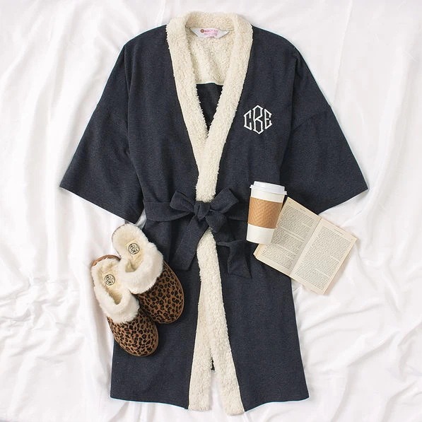 Our Monogrammed Sherpa Robe is a must-have for your morning and evening routines. Marleylilly’s personalized sherpa bath robe is poised to be your next favorite loungewear addition. With its soft cotton and sherpa blend and its personalized monogram design, this monogram robe will wrap you in softness and warmth. Perfect for a bride’s gift for her bridesmaids, a Mother’s Day gift to your mother, grandmother, aunt or wife or as a splurge for yourself, our monogrammed sherpa bathrobe is a good-mood way to start off your day.
