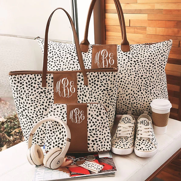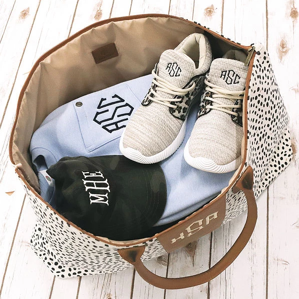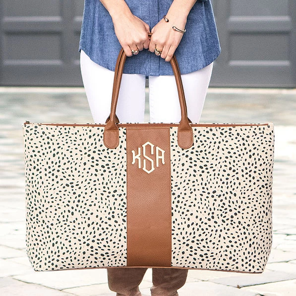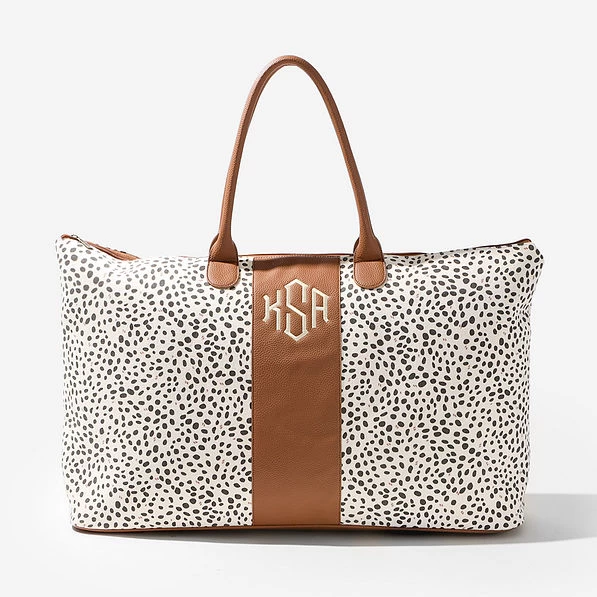 This Monogrammed Weekender is just the right size for you to pack up the essentials for a quick getaway to your favorite weekend spot while showing your wild side! This white and khaki leopard print bag is so fun and classic — like you! It’s a perfect carryall to throw over your shoulder and go!