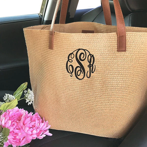 Set out for the sand with this beachy Monogrammed Straw Tote! Whether it’s a one day event or a weekend getaway, this personalized tote bag will suit all your needs! This totes spacious size makes it perfect to fit a monogrammed slim can koolie, monogrammed beach towel, and a good book to read! The straps measure approximately 10″. Choose either cheetah or tan to match your go-to summer look and customize yours today! You won’t be able to wait to show off your adorable tote!