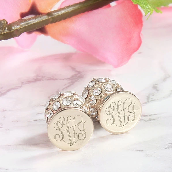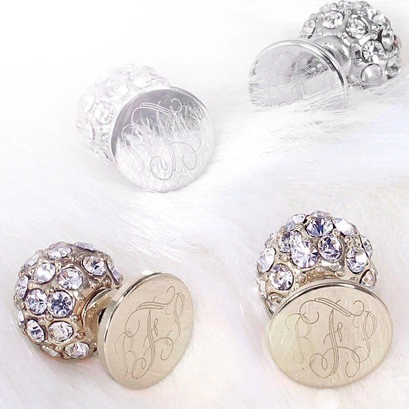 Add a little sparkle to your jewelry box with our Monogrammed Stud Earring Set! Available in gold or silver tone, these reversible earrings add an elegant dose of shine! Made of plated brass with a surgical steel post, each set arrives with monogrammed studs, one set of faux pearls and one set of rhinestone balls. Perfect worn alone or paired with other monogrammed jewelry, these personalized earrings are perfect for layering while adding a personal touch!