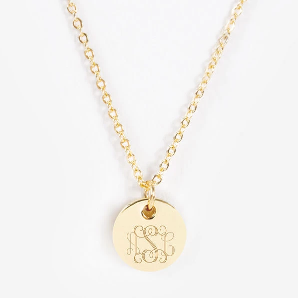 The ultimate in classic, minimal style: this Tiny Disc Necklace is available in gold and silver. The engraved disc measures 9mm and will be engraved with the personalization of your choice.