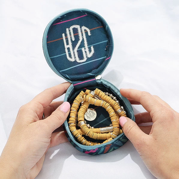 Say hello to the newest addition to our favorite travel collection! This Personalized Travel Jewelry Case is perfect for storing your monogrammed jewelry! High quality and very durable, you can be sure your valuables are well protected! If you love this fun navy safari pattern, we suggest taking a look at the rest of our collection!