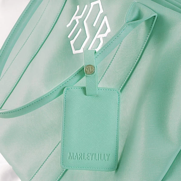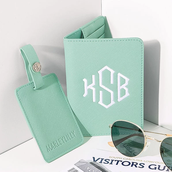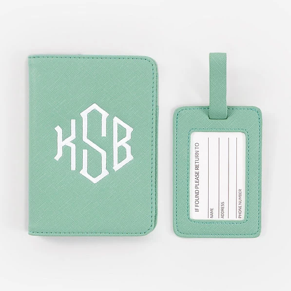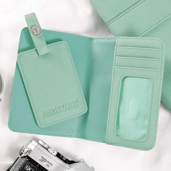 Travel can be hectic and chaotic. Keep your cool and stay organized with our matching passport case and luggage tag. Made of mint saffiano, the outside has the sophisticated look, but is made of a more durable material designed to maintain its fresh color better over time. The matching luggage tag has the same upscale appearance, with a sturdy snap that keeps it reliably secured to your luggage. No more difficulty spotting your luggage at luggage claim. Yours will be the one with the classy tags!