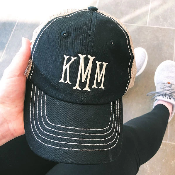Look cute and sporty in a Monogrammed Baseball Hat! Available in multiple colors, this monogrammed snapback hat would pair great with one of our personalized tops. These cotton twill hats have a great brushed look with mesh mid and back panels. Pair it with a monogrammed tote for a cute on-the-go look!