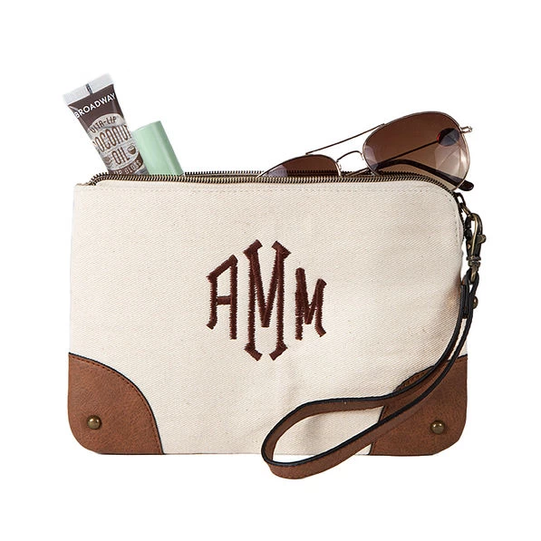 Our monogrammed vintage clutch is just the right size for keeping the essentials securely at hand. This wristlet is a great addition to any outfit style — from casual and contemporary to traditionally classic.Great to wear as a wristlet out or toss in your larger tote to keep your valuable secure!