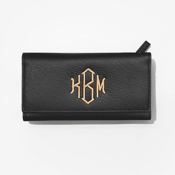 - Personalized wallet is generously sized and made to order with your choice of monogram style, color and design