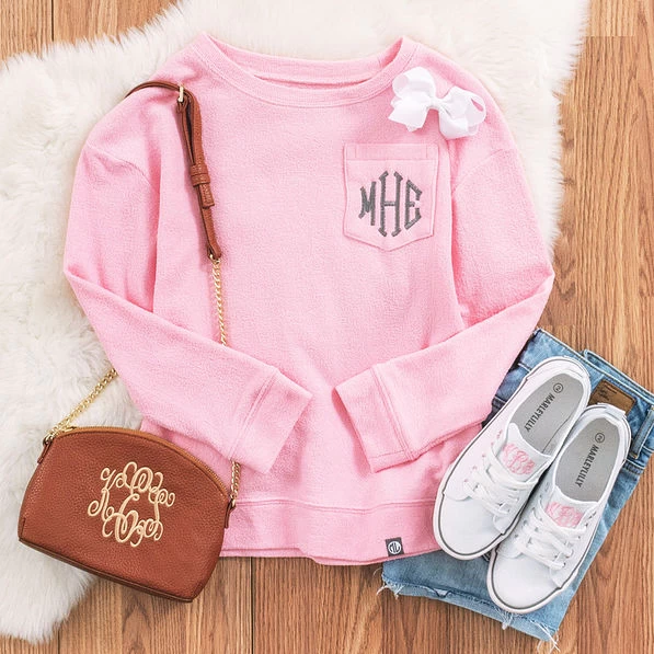 Featuring non-skid rubber soles, gray accents, and our exclusive Marleylilly logo on the back heel, these sneakers are perfect for school, weekend outfits, and so much more! We suggest that you not lace up the top hole so that the monogram is visible. Gifting these to a daughter, niece, or granddaughter? Don’t forget to also grab a monogrammed pullover and baseball hat for her!