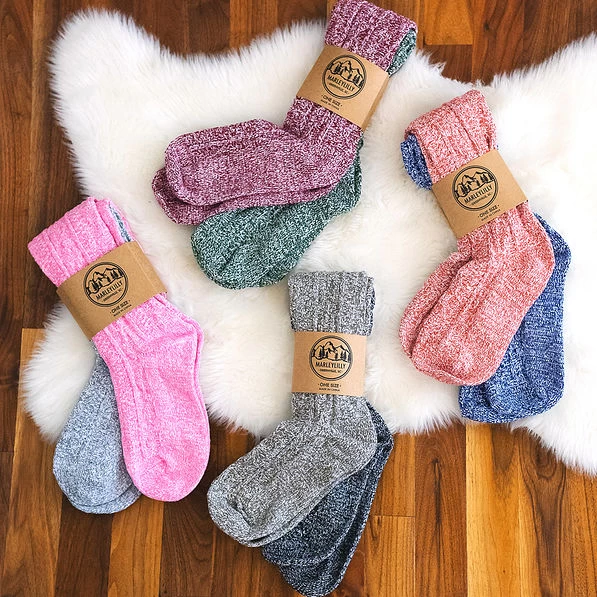 Meet your new favorite sock. Comfortably warm in a scrunch style, these high, mid-calf socks fit the bill when you want to lounge around the house to stay active outdoors. At Marleylilly, we craft our duck boot socks with an ultra-soft knit that cushions your feet with every step. Perfect for slipping into your Marleylilly Monogrammed Duck Boots, these premium rain boot socks will keep your feet warm and cozy all year long. Our socks are available in both adult and child sizes.