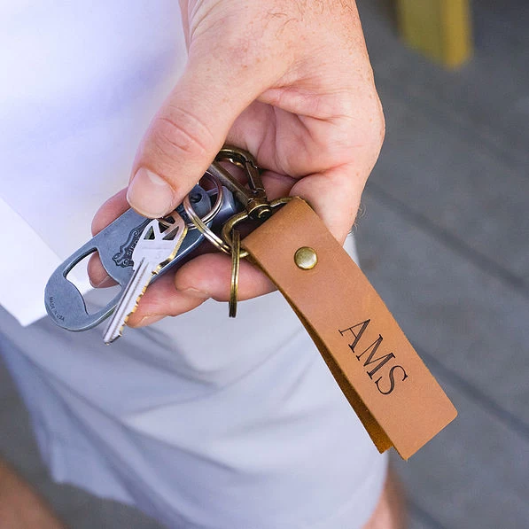 Custom designed with a Genuine Leather loop and antiqued hardware, our Personalized Antiqued Leather Key Fob is perfect for keeping up with your keys! Measuring approximately 6 inches long and 1 inch tall, this laser engraved key chain would be a great Father’s Day gift.