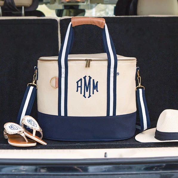 Need to take snacks and beverages on the go? Keeping your favorite beverages icy cold or warm foods warm while on the road is easy to do with our Personalized Canvas Cooler Bag. Whether you’re hitting the beach, tailgating for the big game or picnicking in the woods, Marleylilly has the best cooler. This personalized cooler is an essential part of your travel gear. Our cooler tote bag ensures that you’re ready for any snack or drink request, whether you’re out at a child’s soccer game or camping with friends and family. This fully insulated and zippered bag’s top keeps cool air in; the removable shoulder strap makes it a breeze to carry to every party.