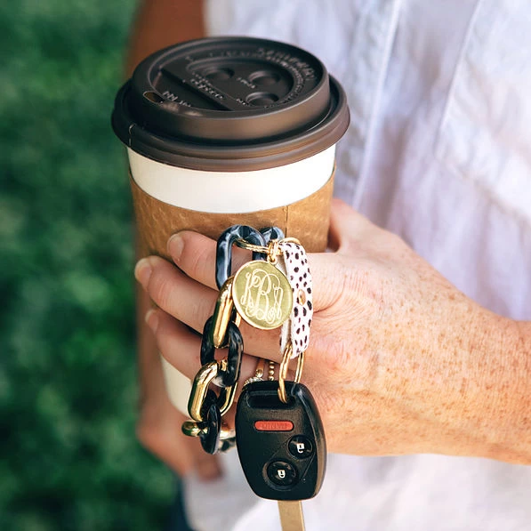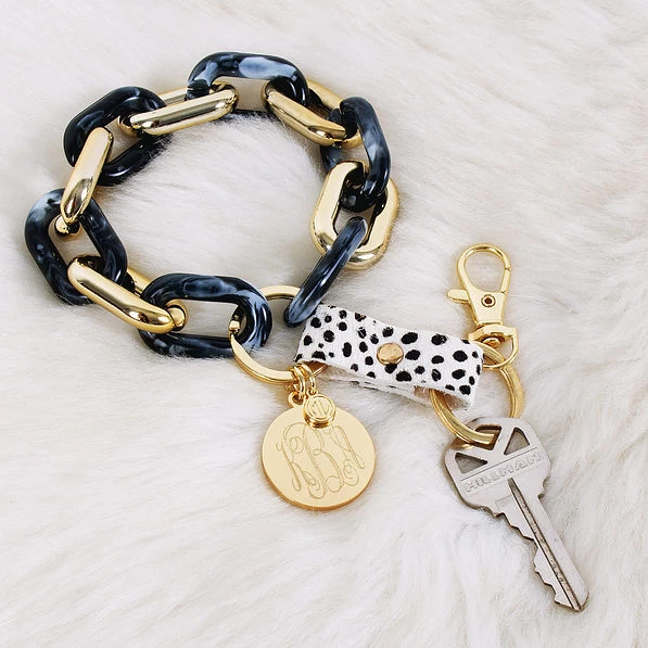 Keeping track of your keys is a constant struggle. With our Personalized Key Chain, it’s so easy to keep your keys handy and not lose them! We’ve made this custom keychain more special by adding our exclusive monogram disc and a trendy spotted leopard detail to make this key chain exclusively yours.